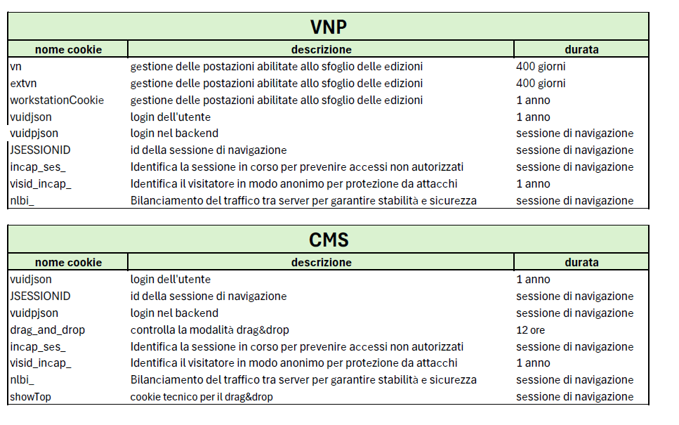 - I dati di navigazione sono conservati secondo quanto specificato nella Cookie Policy.